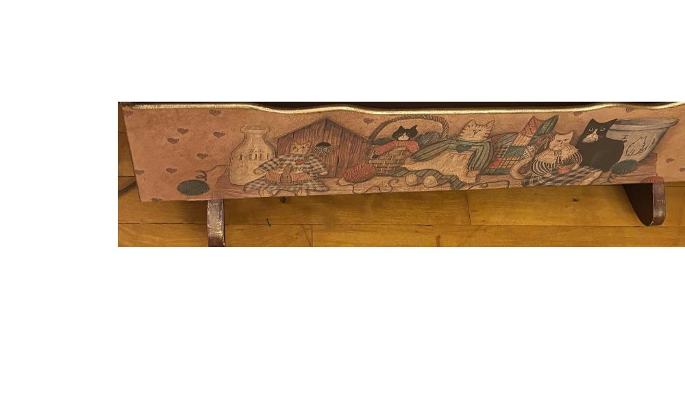 Adorable farmhouse country kitties cradle. Nice for stuffed animals, vintage dolls, plants/flowers, or blankets. Great for the cat lover and adds that country charm to any room. Available on the third floor.