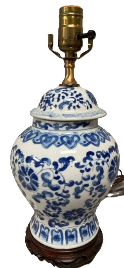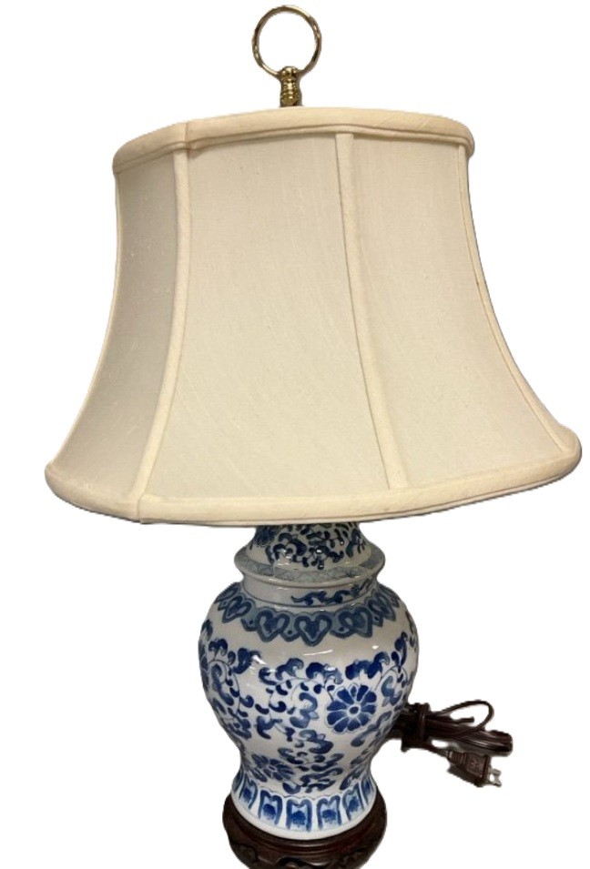Vintage Asian Ginger Jar Table Lamp - made in Hong Kong. Lamp is 24" tall at finial and 15" tall at socket. Very nice lamp. Located on 3rd floor