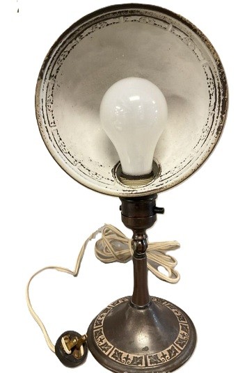 This is an antique table lamp with a 1925 patent date stamped on it and manufactured by the Greist Lamp Company. It is 12-1/2" tall and works.