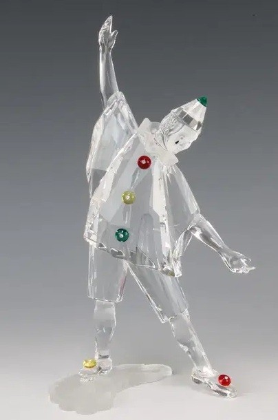 Retired 1999 Swarovski Collectors Society Figurine Annual Edition figurine "Pierrot" w/Pedestal, original box, and crystal plaque - 8" tall. Lovely piece for the collector or admirer. Available on the third floor.