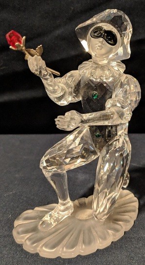 Retired Harlequin-2001-Masquerade - Collectors Society Annual Edition figurine with original box, pedestal, and crystal plaque. Beautiful condition. Height 5-1/8" Available on the third floor.