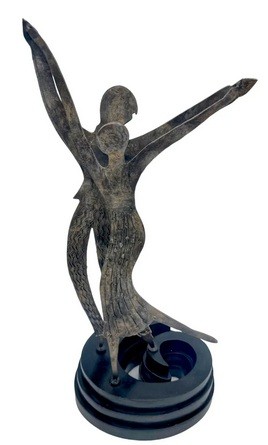 This is a fine example of the Art Deco period and is an exquisite Hagenauer-style silvered sculpture of dancing figures, made in Germany during the 1930’s. According to research, this piece features a well-cast, engraved, and appliqued sculpture of male and female 'flappers,' exuding the spirit of the Jazz Age.
