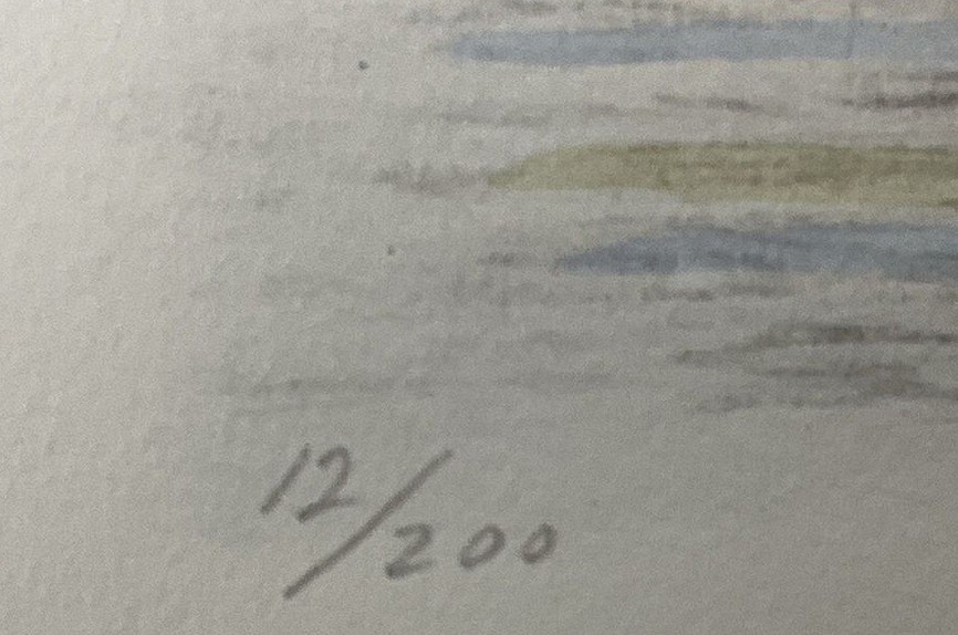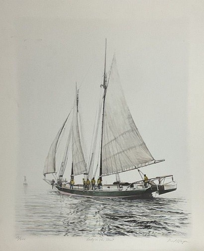 This is a pencil signed, titled, and numbered (12/200) lithograph with hand coloring. Very nice piece of nautical art from Annapolis born artist, Neil Harpe.
