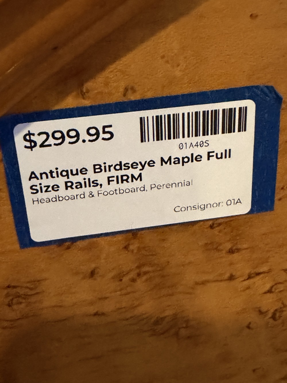 Antique Birdseye Maple Full Size, Headboard, Footboard Rails, FIRM