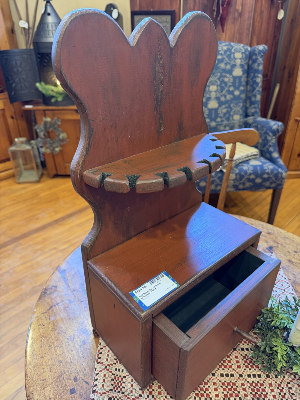 Red Paint Spoon Rack w/Drawer, FIRM