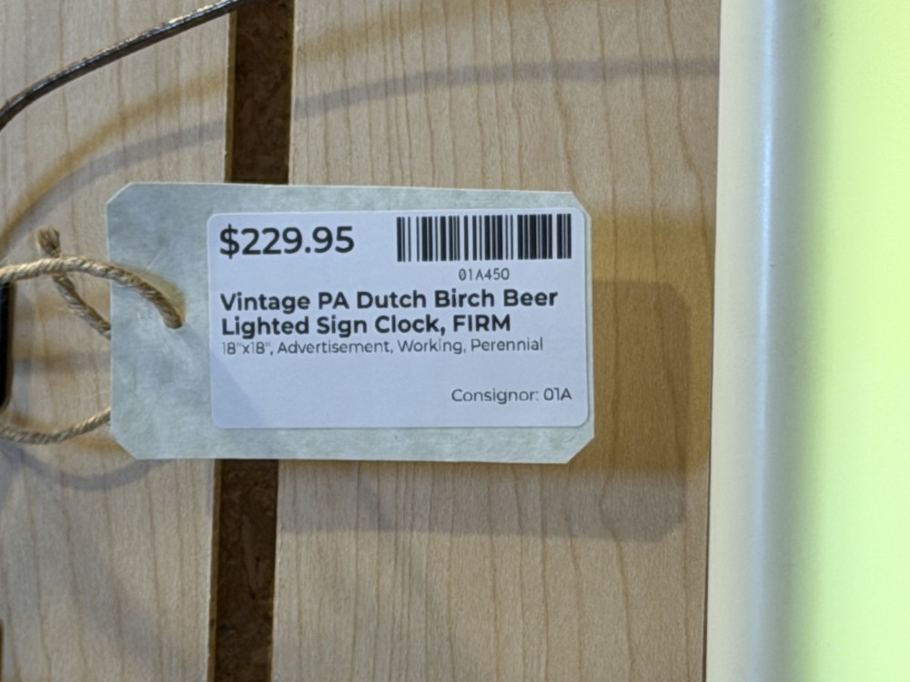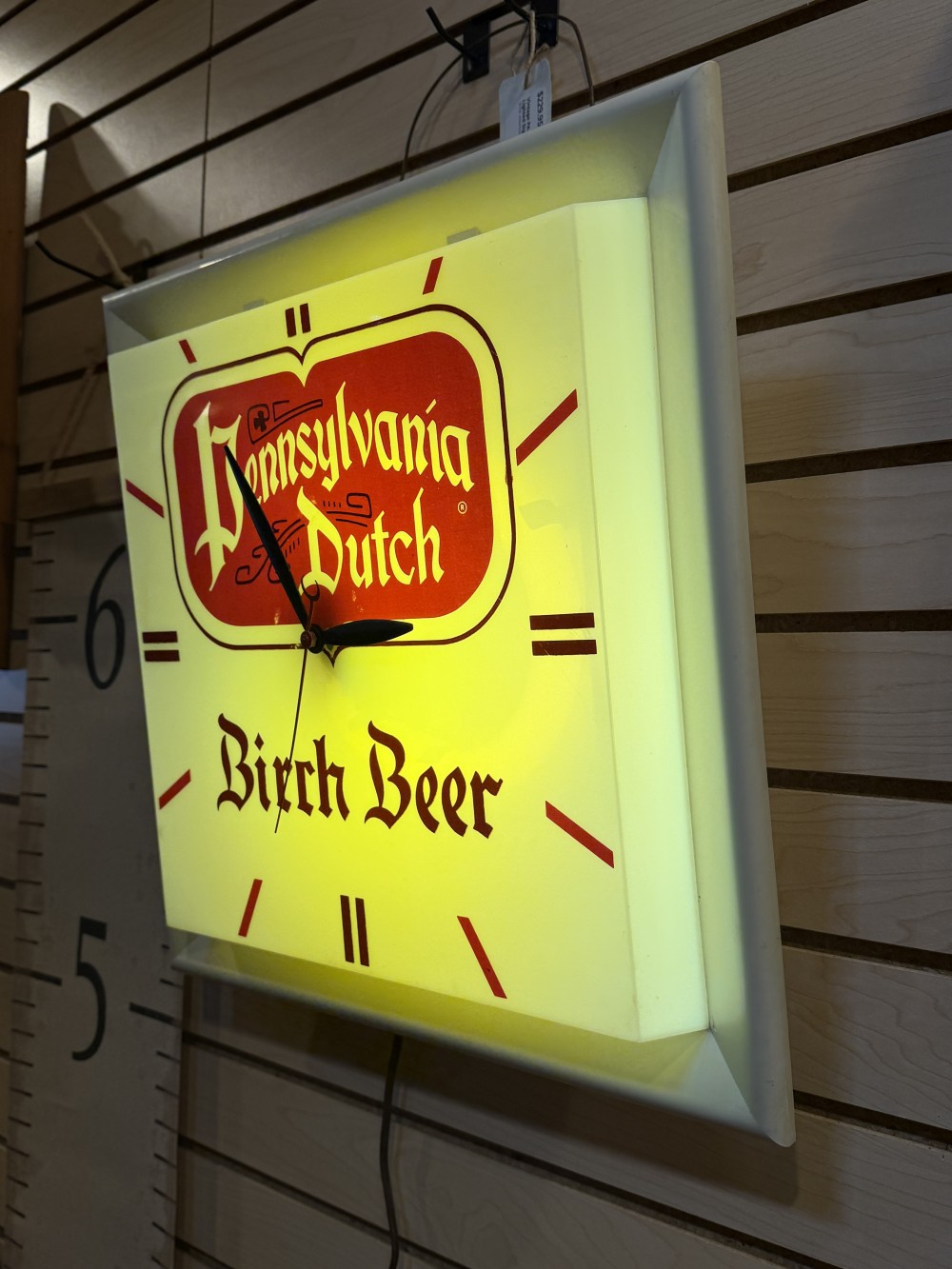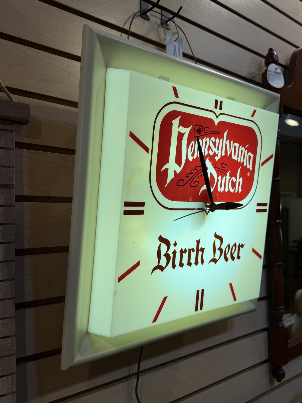 Vintage PA Dutch Birch Beer Lighted Sign Clock, FIRM