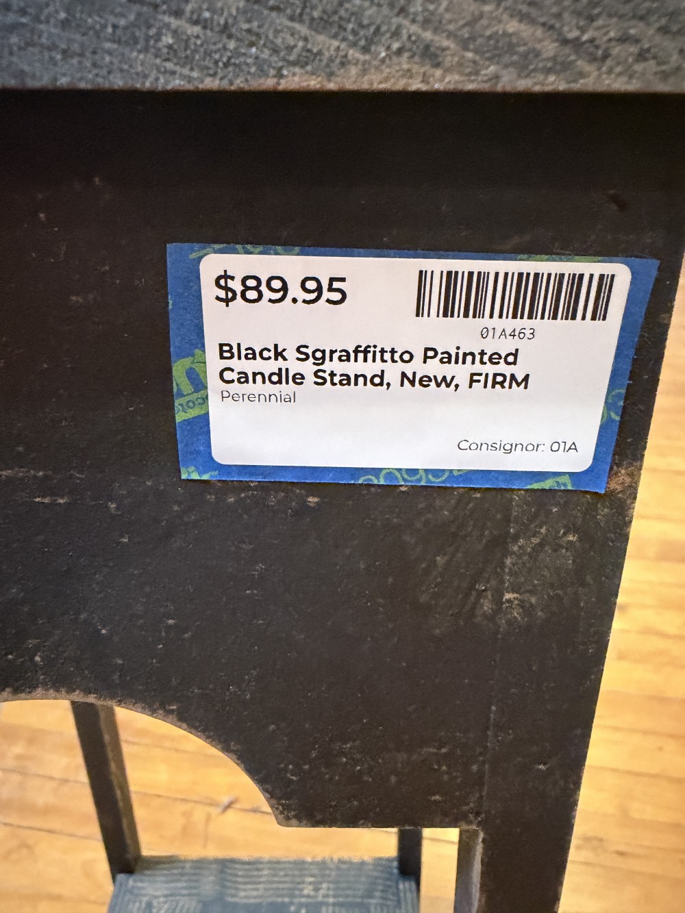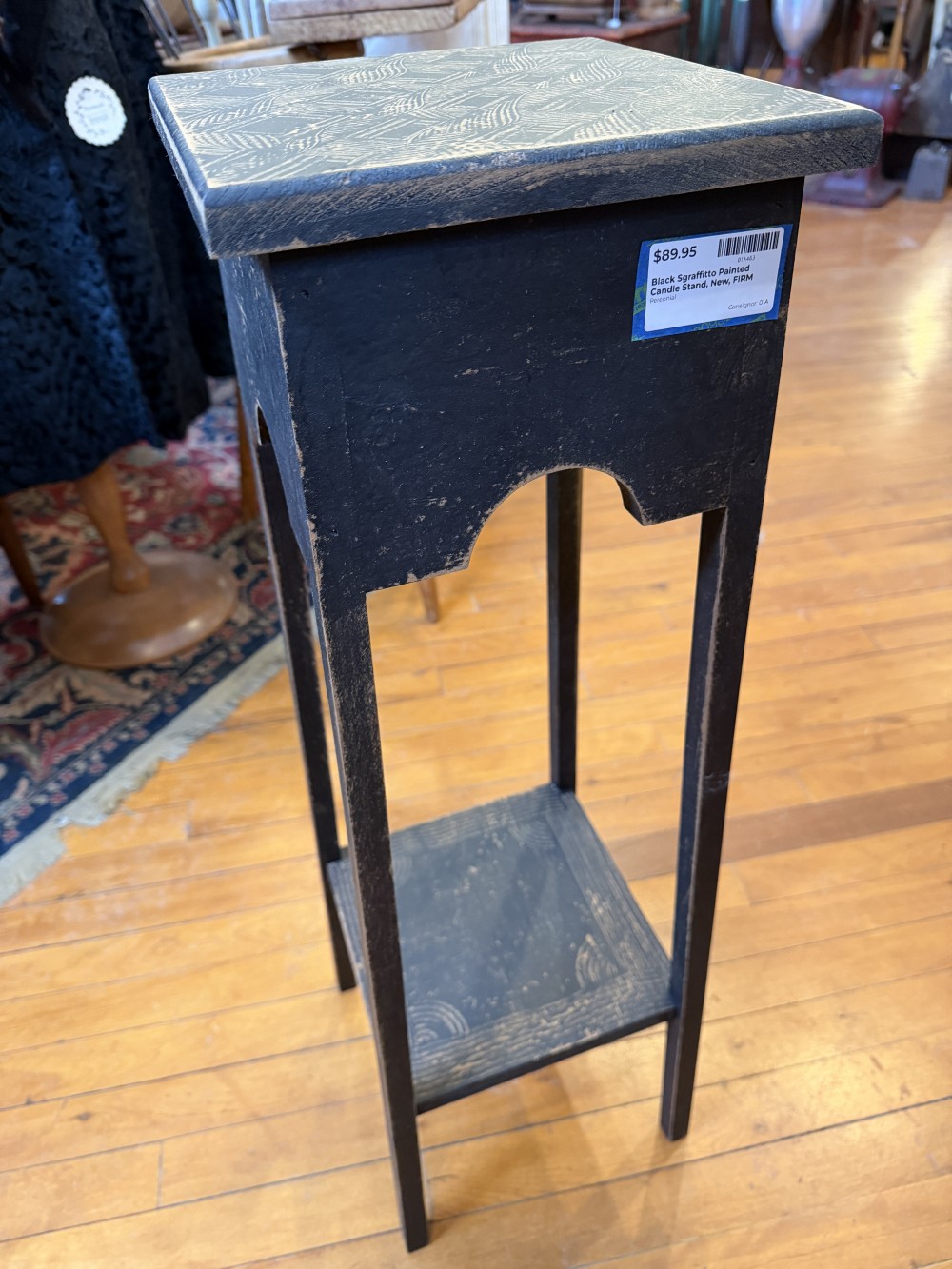Black Sgraffitto Painted Candle Stand, New, FIRM