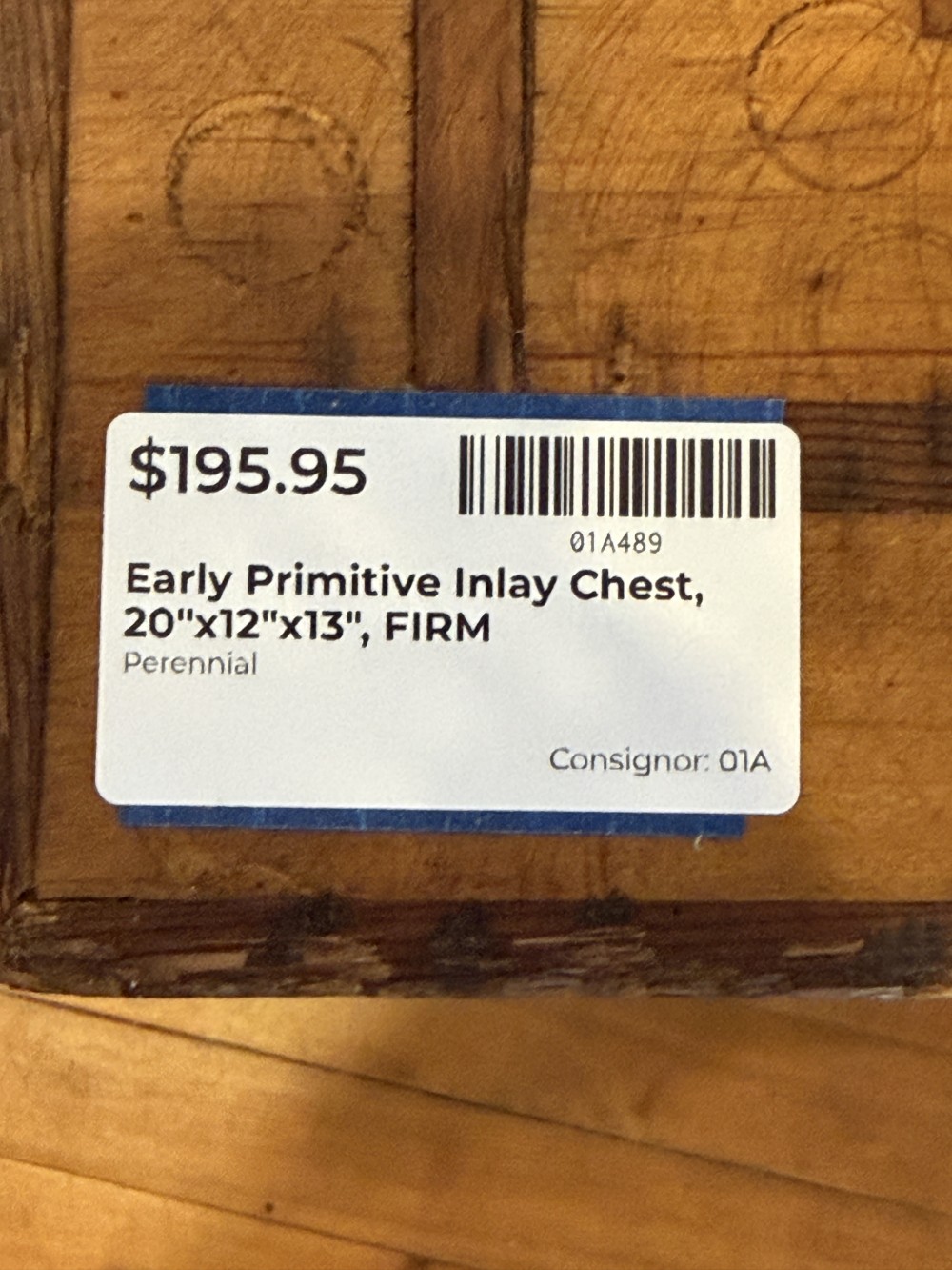 Early Primitive Inlay Chest, 20"x12"x13", FIRMcall or text questions to: Perennial 7175250044