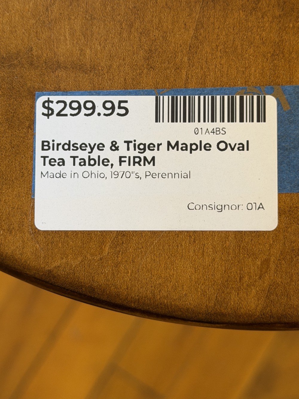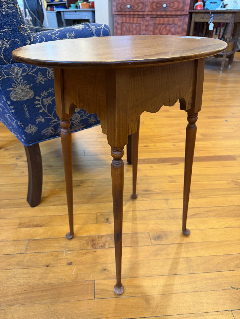 Birdseye & Tiger Maple Oval Tea Table, 20"x15"x25.75", FIRM