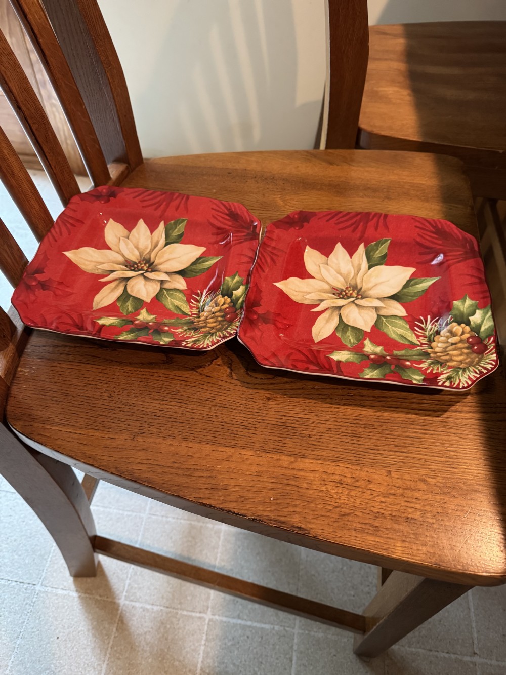 Set of 2 Poinsettia Design plates. 8.5 inches. Mint Condition