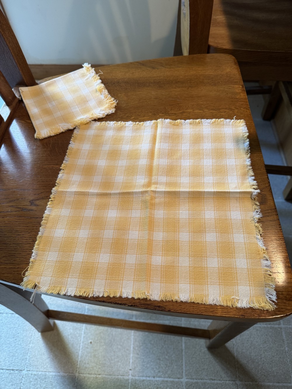 Set of 2 Golden Yellow Plaid Cloth Napkins.Excellent Condition. 12 X 12 inches.